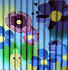Motifs and composition have been developed through a co-creation process between Tokyo Blue and children/young people from Brydes Allé Fritidsklub, Fritidscenter Amager Midt.