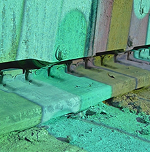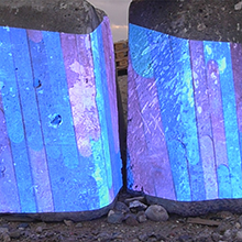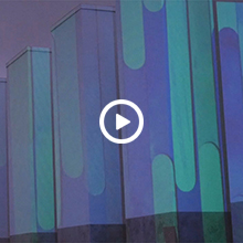 Materialer: Farvet træ og farvet lys samt projektor i samspil med arkitektoniske former og materielle overflader.