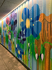 tunnelens vægge udfolder der sig nu to store malerier, hvor de lokale børns