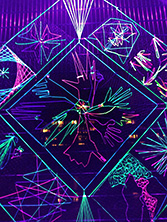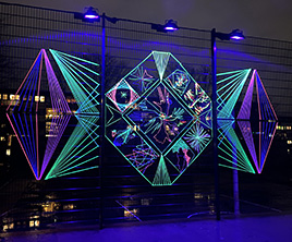 Værket bestod af UV-reaktivt snor monteret på havehegn og UV-lamper, der tilsammen dannede en lysende mandala i stor skala.