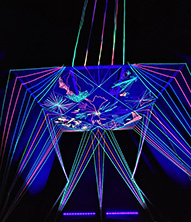 Materialer: UV reaktiv snor og UV lamper.
