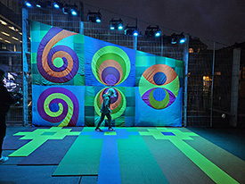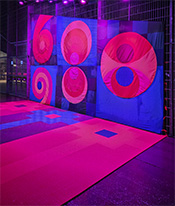 Materialer: Tekstiler, plastfliser og RGBW lamper.
