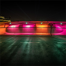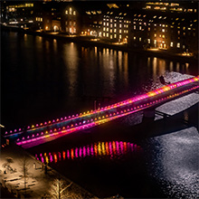 Materialer: Farvefiltre anvendt på broens permanente LED lys.