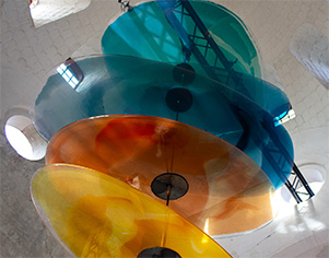 Den hængende lysinstallation kunne både opleves om dagen og i aftentimerne. Om dagen kunne man opleve installationens indfarvede flader i naturligt lys, mens de om aftenen blev belyst med spots, hvilket fremkaldte andre nuancer og lyseffekter i rummet. Om aftenen skabte afdæmpede lyslinjer og belysning af kapellets facade en scenografi omkring installationen.